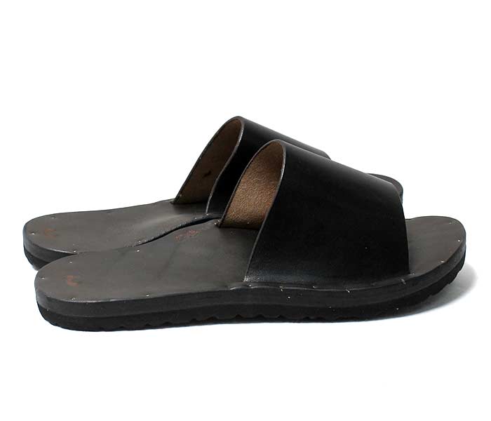 ─ ラティゴレザーを贅沢に使ったオープントゥモデル 甲を覆うボリュームたっぷりなレザーが象徴的なモデルです。